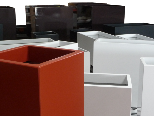 Combinaison de bacs fins pour l’aménagement d’une bordure de terrasse. Destinés à recevoir des plantes artificielles, une rehausse de fond a été prévue.