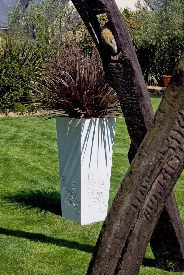 When a floral pattern carves the pure and mineral structure of a concrete tank, it brings it elegance and character. Made in Ductal ®, ultra-high performance concrete (UHPC), this plant container adapts particularly well to constraints !