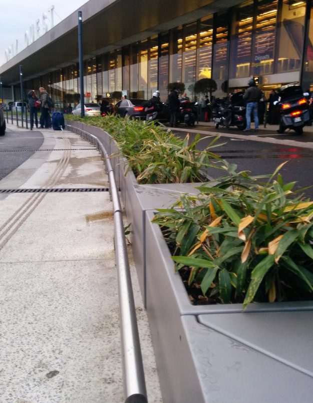 STEELAB signe une nouvelle réalisation de taille devant le terminal d’Orly Ouest des Aéroport de Paris avec sa gamme de jardinières en aluminium.