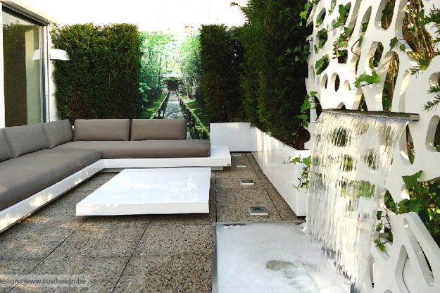 DétailsLes jardinières Image’In ont su une fois de plus s’adapter parfaitement à la conception design de cette terrasse. Forme, teinte et rendu matière sont en total adéquation avec le mobilier de jardin et la fontaine centrale.