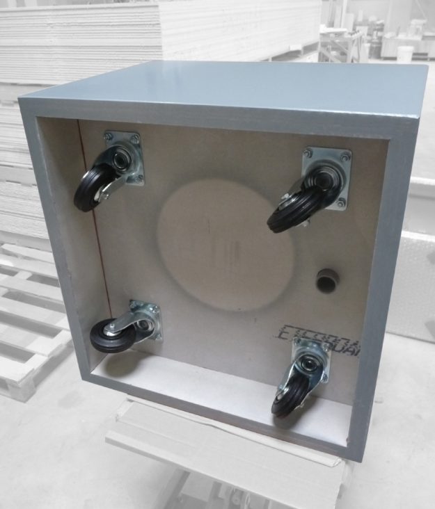 Dissimulées dans le fond des bacs, les roulettes de manutention pivotantes sont totalement invisibles. L’effet visuel est particulièrement saisissant car les bacs à plante semblent léviter au dessus du sol.