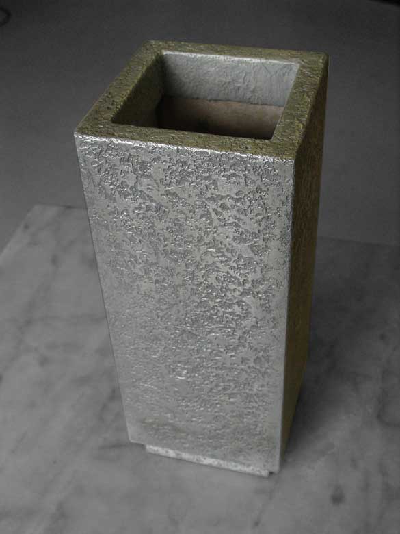 Essai de métallisation sur l’une des petites jardinières échantillon distribuées à nos clients architectes et paysagistes. Le résultat fut très probant mais le projet ne sera malheureusement pas concrétisé.
