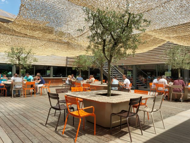Les bacs en fibre ciment Image’In conviennent aussi bien aux usages intérieur qu’extérieur. Idéal pour un aménagement harmonieux dans un restaurant équipé d’une terrasse.