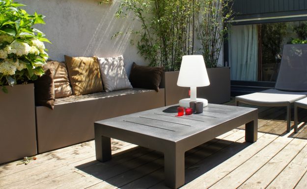 Terrasse à Düsseldorf – Jardinières patinées Zinc