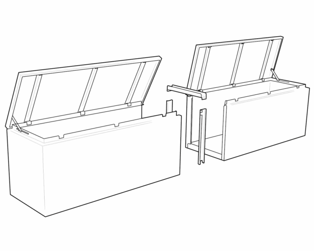 Très grand coffre étanche STEELAB – « SAS-COE » pour usage en extérieur (cour, jardin, terrasse…) C’est la solution idéale pour le rangement à l’abris de l’humidité d’objets particulièrement encombrants tels que les parasol, bâche de piscine, transat, mât, planche, paddle, vélo … Les très grands coffres en aluminium STEELAB sont formés de plusieurs éléments associés. Une…