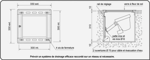 - Verre trempé SECURIT, épaisseur 10 mm ;