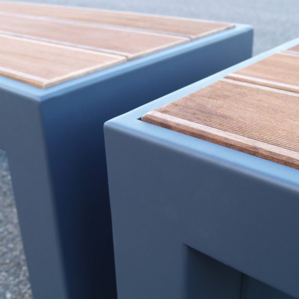 Matériaux : Tôlerie Acier zingué thermolaqué (toutes teintes du nuancier RAL); Lames de bois exotique