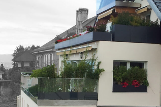 Custom planters Image’In – Combination of Black and White forms for climbing plants.