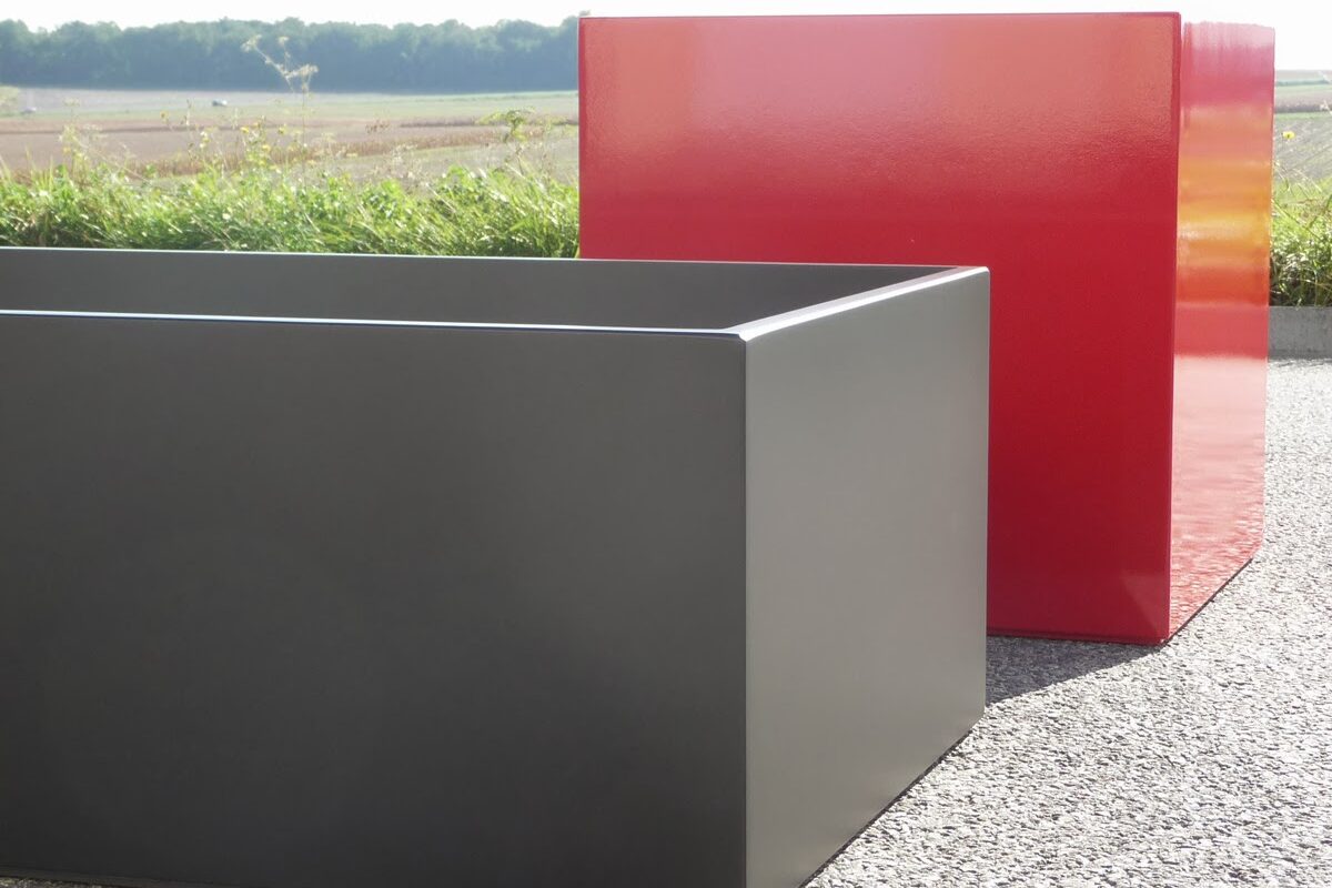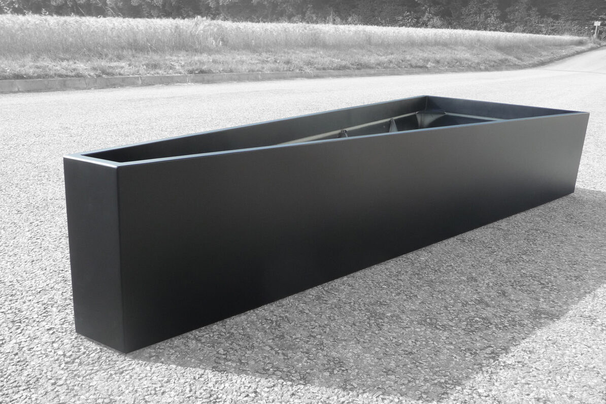 Planned for climbing plants, the plant tubs are drilled throughout their height to allow attachment of cables.