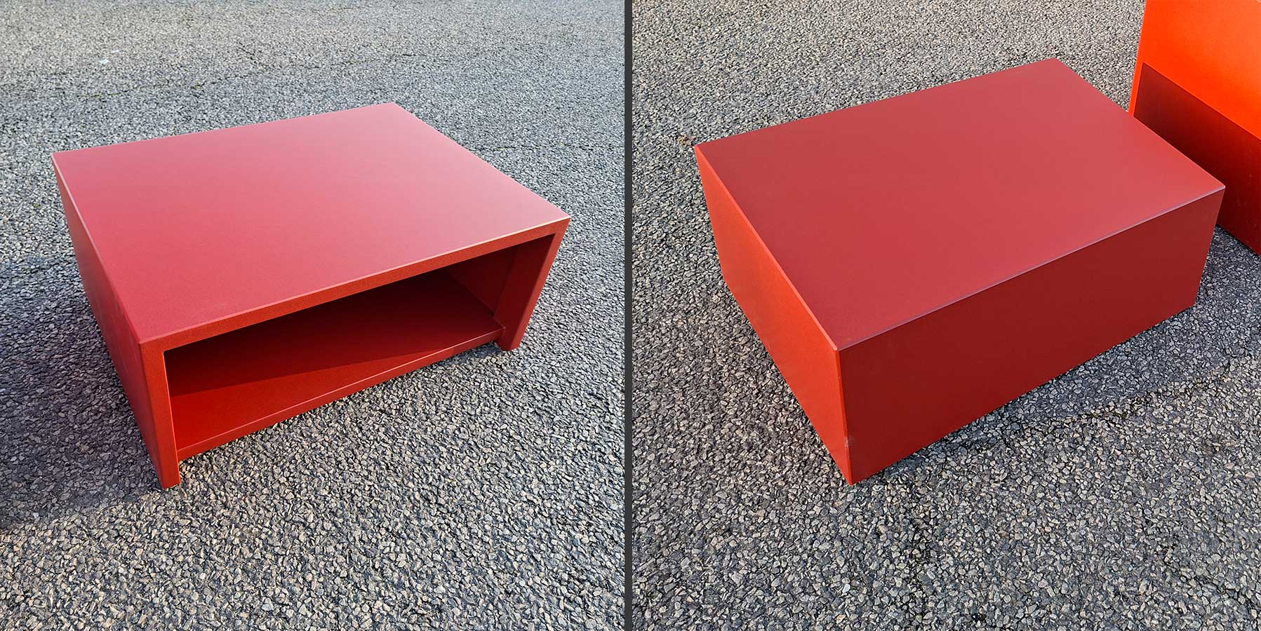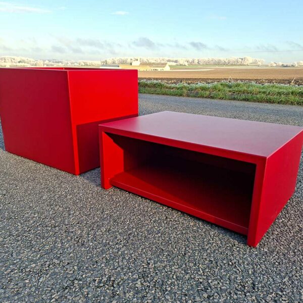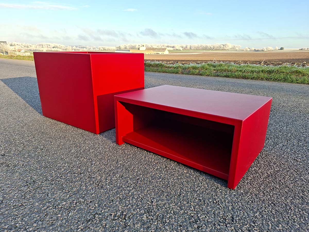 Teinte RAL 3003, avec un vernis de finition micronisé.