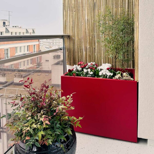 La jardinière haute permet d’accueillir tous types de végétaux (plantes, arbustes, compositions florales), tandis que le module bas offre un espace de rangement fonctionnel et polyvalent : étagère, bûcher, table basse ou bout de canapé.