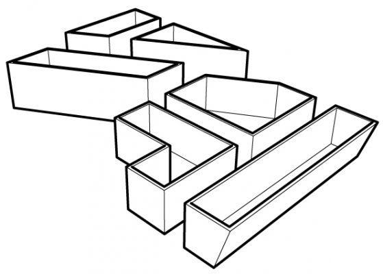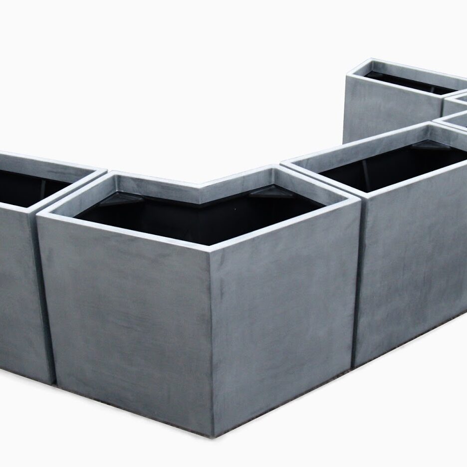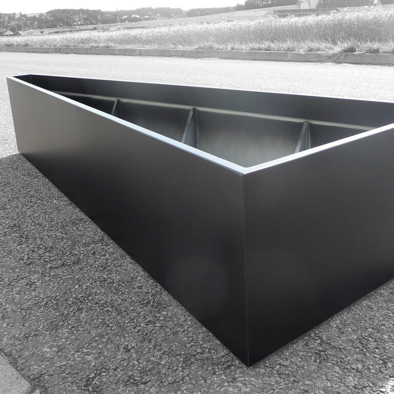 Les formats spéciaux illustrés ici ont vocation de présenter nos capacités de fabrication : jardinières d’angle, en L ou triangulaire, en forme de trapèze, parallélépipédique, en pyramide inversée, aux angles biseautés …