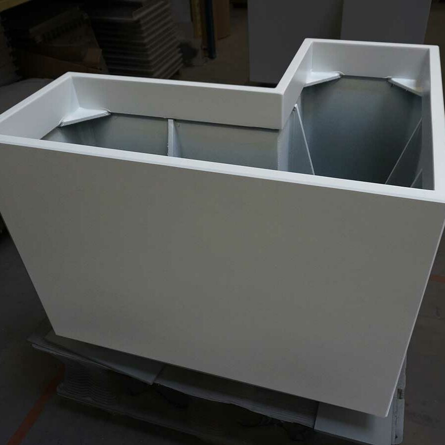 Le fibre-ciment est rigide ; il va se comporter un peu comme une poterie. Ce matériau est donc adapté à des bacs de taille raisonnable avec des fonctionnalités simples. Pour les gros volumes et les systèmes plus complexes nous proposerons nos jardinières en tôlerie STEELAB.
