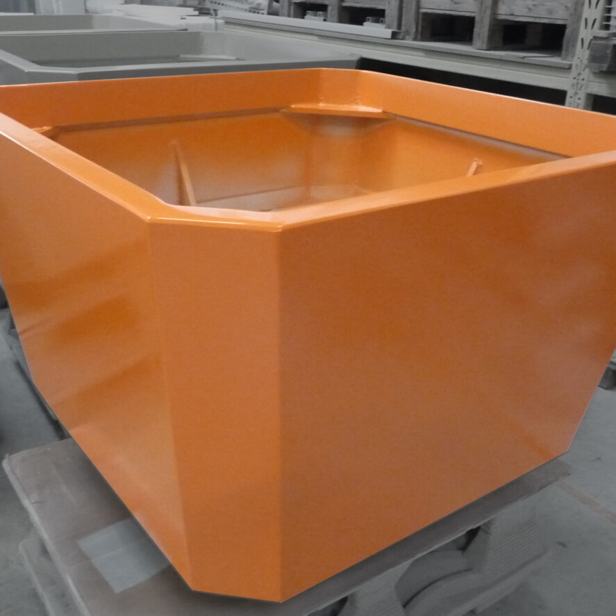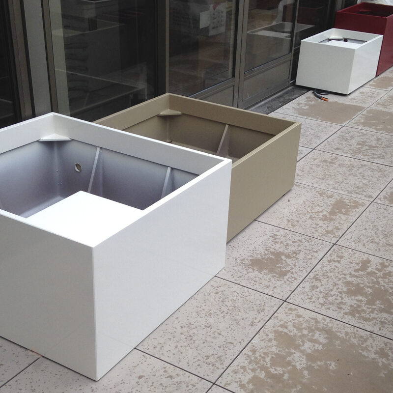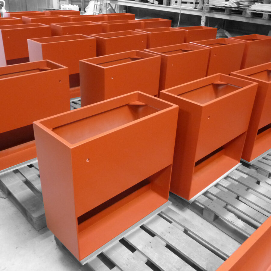 Enfin, nous vernissons tous nos bacs à plantes de série en finition mate, satinée, brillante ou micronisée au choix.