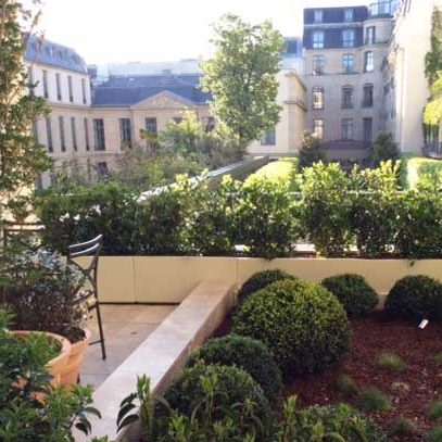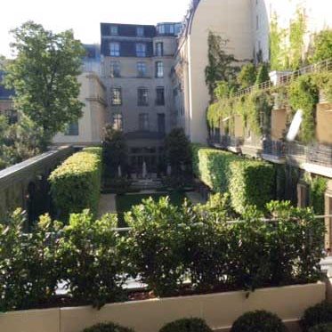 Ce Luxueux hôtel Parisien a fait le choix des jardinières en tôlerie STEELAB SLD pour border et végétaliser les balcons de ses suites.